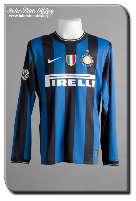 Quest'anno c'č da registrare un addio eccellente, lo svedesone Zlatan Ibrahimovic cede alle lusinghe di un fortissimo Barcellona e convinto di andare nella squadra che finalmente gli farą vincere la Champions League lascia l'Inter che ironia della sorte trionferą proprio lei in Europa. Dal suo canto il nostro presidente nello scambio riesce a strappare ai dirigenti spagnoli non solo un grande giocatore come Samuel Eto'o che non farą rimpiangere affatto Ibra, ma avrą anche un conguaglio di circa 50 milioni di euro che gli consentiranno di prender altri giocatori fortissimi: Dal Bayern Leverkusen arriva il difensore brasiliano Lucio, dal Genoa arrivano Diego Milito e Thiago Motta e per ultimo ma non certo per importanza, il grandissimo centrocampista olandese Wesley Sneijder, scartato dal Real Madrid e risultato indispensabile per la grande stagione. Questa č l'annata storica della tripletta, un impresa spettacolare di dimensioni inimmaginabili al culmine di un ciclo di anni vincenti e straordinari, paragonabile solo al ciclo della "Grande Inter" degli anni '60. Siamo la prima squadra italiana (sesta in Europa in 55 anni) ad aggiudicarsi nella stessa stagione il Campionato per noi il diciottesimo e quinto consecutivo, la Coppa Italia per noi la sesta e la tanto sospirata Champions League la terza della nostra storia che manca nei nostri trionfi da ben 45 anni. Quest'ultima, in un girone molto equilibrato, la cominciamo in sordina con tre pareggi consecutivi, ma subisce una svolta nella partita di Kiev del 4/11/09, dove con caparbietą ed una volontą straordinaria vinciamo sulla Dinamo per 2 reti a 1 la gara che stavamo perdendo per 1 a 0 fino a 5 minuti dalla fine, balzando primi nel girone. Perdiamo soltanto con il Barcellona dei marziani campioni in carica, ma la vittoria sul Rubin Kazan a S.Siro, ci permetterą di qualificarci agli ottavi di finale. Da li in poi sarą una cavalcata trionfante: eliminiamo il Chelsea agli ottavi, vincendo sia a Milano che allo Stamford Bridge di Londra dove sono sette anni che non prende un gol; Il Cska ai quarti, vincendo sia a milano che a Mosca; Il grande Barcellona in semifinale, schiacciandolo a S.Siro (3 a 1 il risultato finale) e perdendo solo 1 a 0 il ritorno in Spagna anche se in dieci uomini per pił di un'ora, per l'espulsione ingiusta di Thiago Motta e infine il Bayern Monaco in finale in una serata memorabile allo stadio Santiago Bernabeu di Madrid il 22 maggio 2010 con una doppietta del "Principe" Diego Milito. Pratricamente vinciamo una Champions League senza ombre, battendo i campioni d'Inghilterra, quelli di Spagna, quelli di Gemania e quelli di Russia, contando il Rubin Kazan nel girone. Le maglie bellissime sono veramente tante, personalizzate per ogni singolo evento.